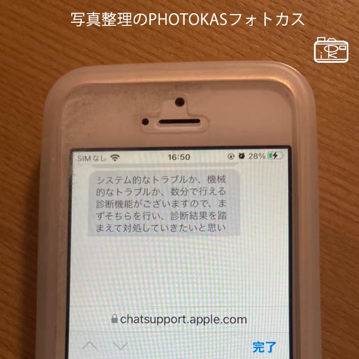 ⇒チャットをしながら、「設定」画面を開き、操作する…というスタイルになります。当日は、手元にペンとメモ用紙、スマホ以外のカメラ(デジカメなど)でチャット画面を撮影&横に置いて見ながらiPhoneを操作しました。