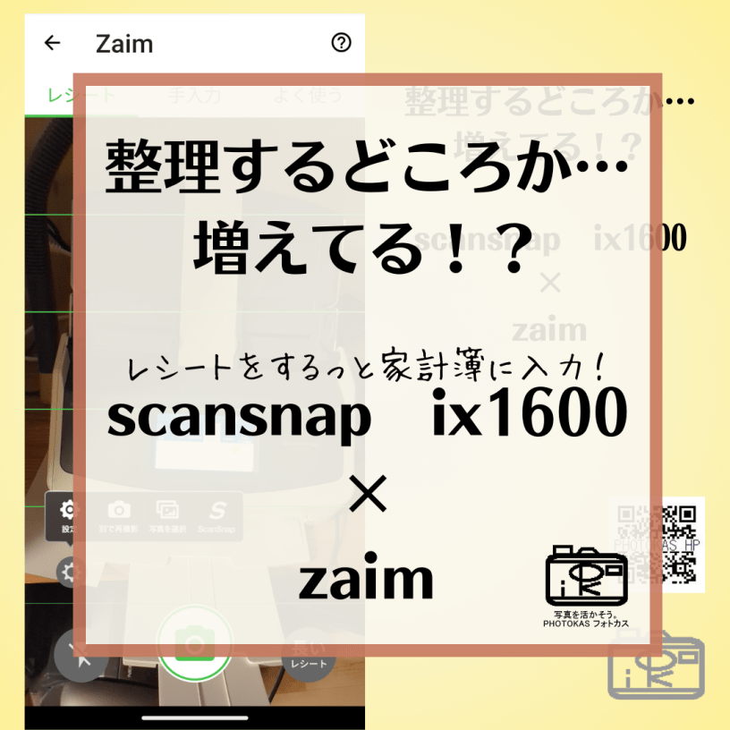 家計簿アプリ ザイムzaimに レシートのデータを入力するため、スキャナーscansnap ix1600を利用しています。レシートを見ながら手入力…は不要!レシートをする~っとscansnapに通せば、家計簿データ入力完了です!(*^-^*)