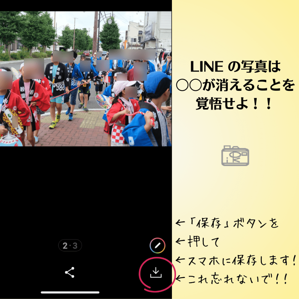 - LINEの写真は「保存」ボタンを忘れずに!