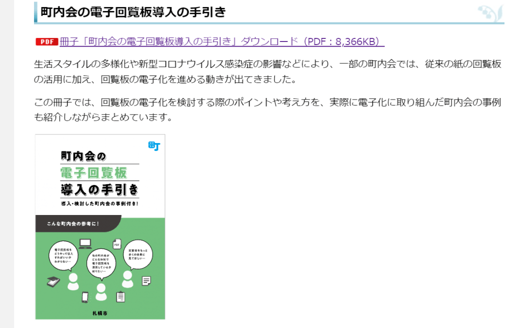札幌市の「町内会電子回覧板導入の手引」を使用させていただきました (2024/4現在)