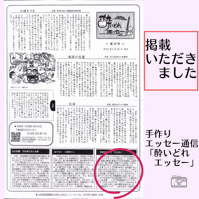 このたび、手作り通信「酔いどれエッセー」第67号に掲載いただきました。