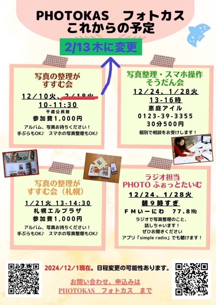 - 写真整理をテーマとした講座(道新文化センター 「古い写真を整理」)⇒終了