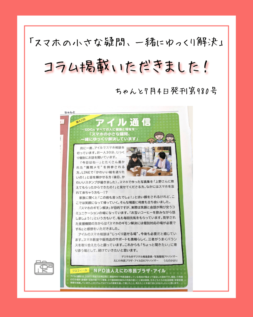 アイル通信「スマホの小さな疑問、一緒にゆっくり解決しています」☺