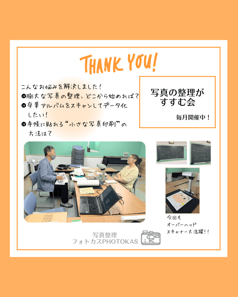 スマホ写真、古いアルバム写真の整理術のレクチャーなどもしております。