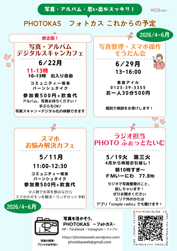 PHOTOKASフォトカスの これからの予定です!よろしくお願いします(*^-^*)