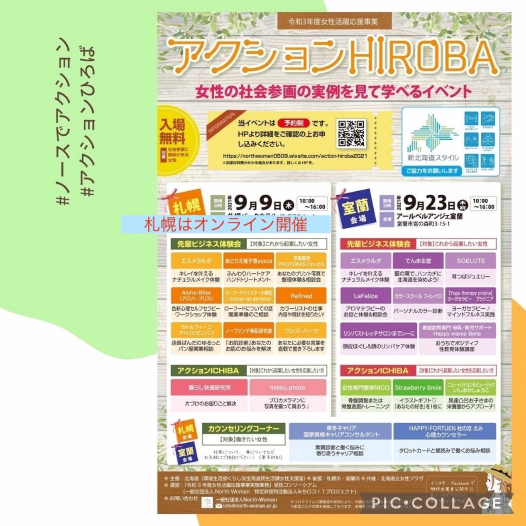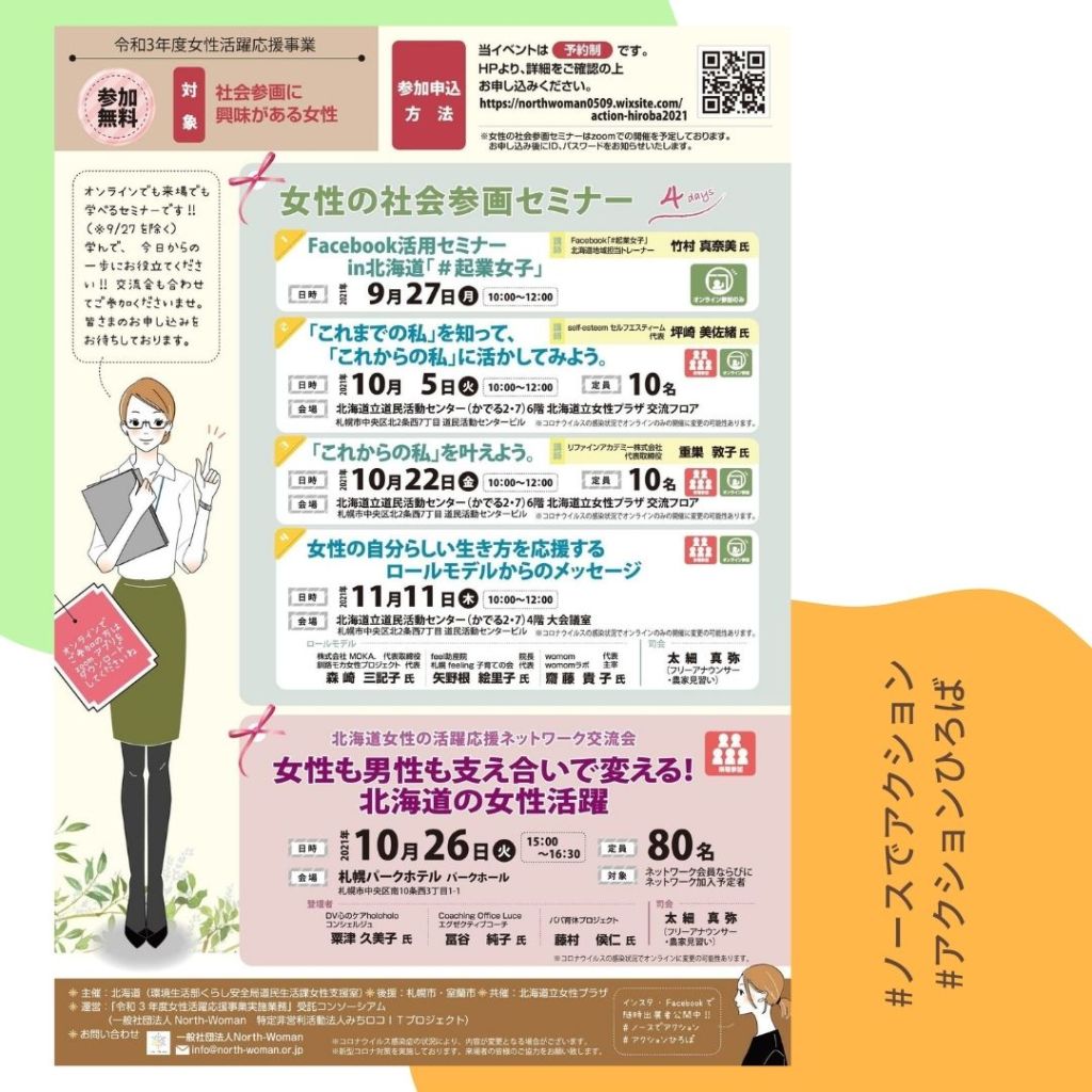 今年度も、女性の社会参画のさまざまな方法を紹介する北海道主催のイベント「アクションHIROBA」に出展いたします!